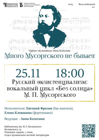 25 ноября в 18:00 состоится лекция и концерт, посвященные творчеству М. П. Мусоргского.