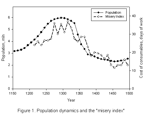 Malthusian-Ricardian theory of Postan and Le Roy Ladurie works quite well in