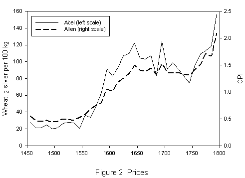 real wages reported by Allen (2001). There was a very close inverse relationship between these