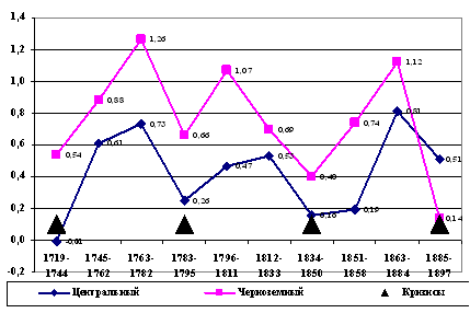 времена Петра I демографический цикл находился еще в фазе роста, на Юге