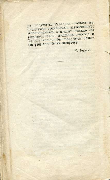 В. Д. Белов. Кризис Уральских Горных заводов. 1909 г. / В. Д.