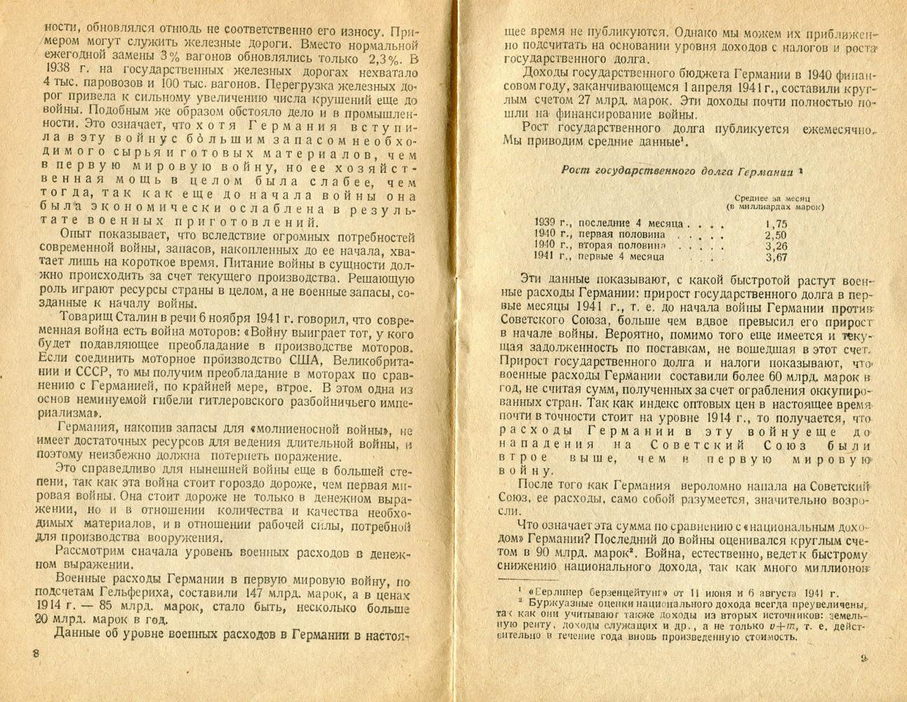 Варга Е. Хозяйственные ресурсы Германии истощаются. - Свердловск : Госполитиздат, 1942. - 22 с. : табл.