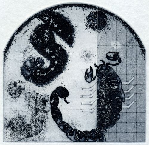Владимир Зуев представляет работы, в той или иной степени связанные с «галактикой Гутенберга»: цикл «Зодиак» (2019), серия «Семь смертных грехов» (2021), иллюстрации к книге итальянского писателя И. Кальвино «Невидимые города» (2022). Эстампы, выполненные в технике гравюры на металле (офорт, мягкий лак, резцовая гравюра, акватинта) в сочетании с высокой печатью отражают уникальный авторский язык художника, позволяющий обращаться к традиционным темам мировой культуры, но делающий их звучание резонансным современности.