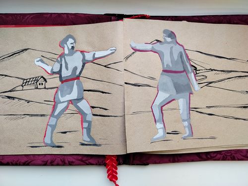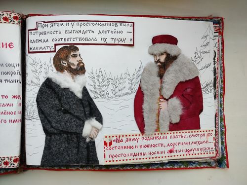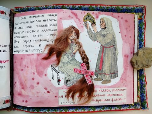 «Дальше студентам было предложено подумать, какая тема могла интересовать их предков в предыдущие века. Кто-то вспомнил, что все в их семье по одной из линий были охотниками, другие с улыбкой рассказали, что вся деревня были драчуны, третий говорили о прабабушках-искусницах с вышивкой и народными куклами... А кто-то просто очень любит готовить, и желал познакомиться со старинными рецептами. Так и определились с темами книг. И все издания предлагалось выполнить от руки, включая тонировку страниц, иллюстрации, сшивку, и конечно, написание текста.