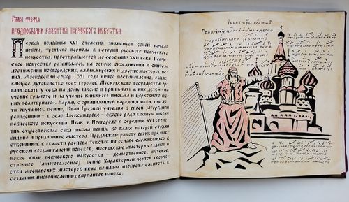 Студенты тренировались во владении старинным письмом, в изображении старославянских шрифтов, буквиц и т.д. Тематика всех книг под стать этому: история, быт, обычаи, народное творчество былинной Руси, начиная из глубины веков и заканчивая временами царской России. В основе текстов извлечения и выдержки летописных первоисточников, из трудов историков и исследователей.