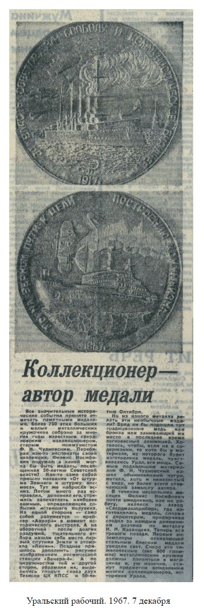 Огромная коллекция с трудом умещалась в его квартире. В свердловских газетах писали, что и Русский музей, и Эрмитаж готовы принять в свои фонды коллекцию Чудновского. Но он мечтал подарить ее всем свердловчанам – создать «народный музей прикладного искусства на общественных началах». И был уверен, что в Свердловске найдутся и другие коллекционеры, готовые передать в дар хотя бы несколько экспонатов, и энтузиасты-искусствоведы, готовые безвозмездно работать в музее.