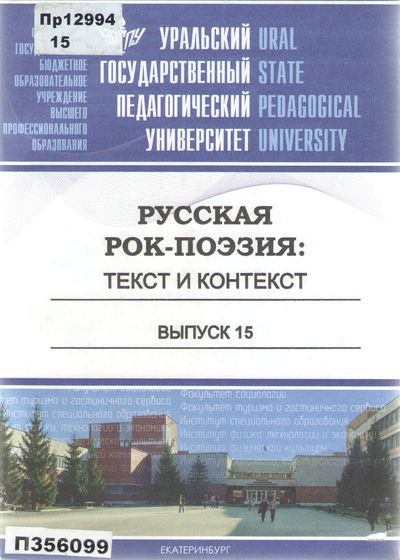 — 1 — В фонде Библиотеки им. Белинского имеются издания, изучающие рок-композиции вовсе не в виде куплетов с припевами, а как настоящие стихи. Показательны выпуски 15 и 16 «Русская рок-поэзия: текст и контекст» за 2013 и 2016 гг. соответственно. Сугубо научный подход к рок-поэзии в русле современной русской поэзии вкупе с подробным анализом ее стилистических особенностей демонстрируют сборники статей, инициированные Уральским государственным педагогическим институтом.