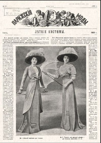 Выставочный проект «Хроноцикл» отдела редких книг знакомит читателей с «Парижскими модами». Журнал был приложением «Нивы» – популярного русского еженедельника для семейного чтения (о нем мы рассказывали на январской выставке), выходил в Петербурге ежемесячно с декабря 1871 по 1918 год в виде брошюры из 8-ми страниц и был прекрасно иллюстрирован.