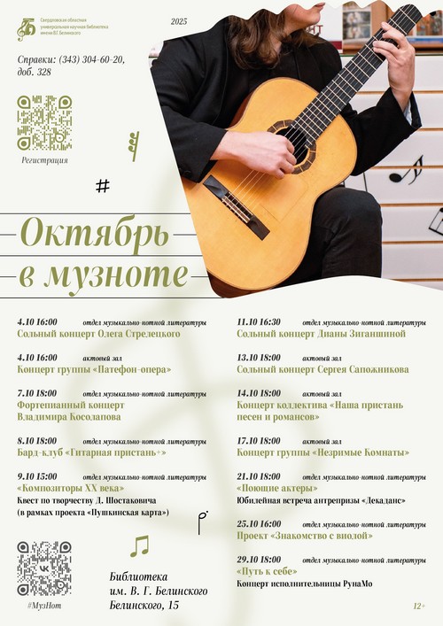 Познакомиться с полным расписанием мероприятий отдела музыкально-нотной литературы можно в афише на октябрь.