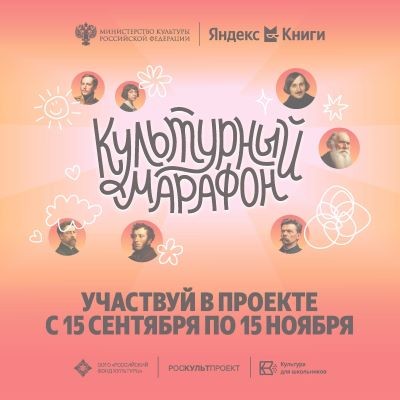 Министерство культуры Российской Федерации совместно с компанией «Яндекс» и сервисом «Яндекс Книги» запускает очередной «Культурный марафон», который поможет школьникам по-новому взглянуть на великие произведения русской и мировой литературы.