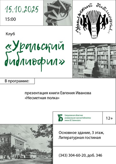 15 октября в 15:00 приглашаем на очередное заседание клуба «Уральский библиофил».