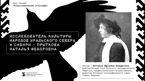 28 октября в 18:00 состоится лекция, посвященная исследователю культуры народов Уральского Севера и Сибири Наталье Фёдоровне Прытковой. Лектор – руководитель Комиссии по этнографии и исторической географии Свердловского отделения Русского географического общества и профессиональный путешественник, Алексей Викторович Слепухин.