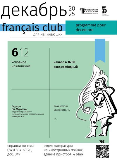 Независимо от вашего текущего уровня владения языком, вы сможете получить максимум пользы от занятий и насладиться процессом обучения. На встрече 6 декабря, по просьбам постоянных участников клуба, будем разбираться в хитростях употребления условного наклонения во французском языке.