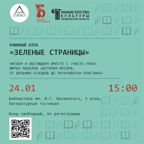 Новогодний поворот сюжета – «Чисто Урал» открывает новую главу. В наших пространствах помимо пейзажей появятся ещё и литературные ландшафты. Приглашаем вас в книжный клуб «Зелёные страницы», который начнёт свою работу 24 января!