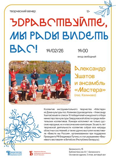 В субботу зовем на концерт инструментальной народной музыки. Зрителей ждет удивительное выступление ансамбля «Мастера» из поселка Калиново под руководством Александра Ушатова.