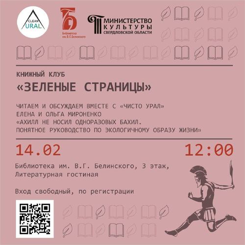 В субботу 14 февраля книжный клуб «Зеленые страницы» соберется в литературной гостиной, чтобы обсудить книгу российских экологов Ольги и Елены Мироненко «Ахилл не носил одноразовых бахил. Понятное руководство по экологичному образу жизни».