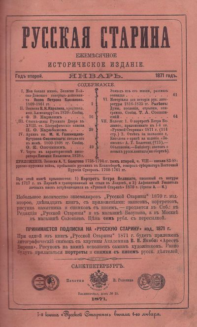 В «Русской старине» преобладали записки, дневники, автобиографии, биографические очерки, немало места отводилось неизвестным сочинения русских писателей, документам личного происхождения.