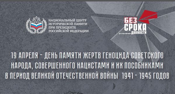 19 апреля день памяти жертв геноцида советского народаПриглашаем вас посетить сайт, посвященный этой памятной дате.