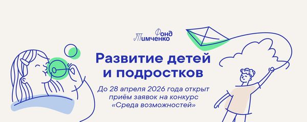 Фонд Тимченко объявляет прием заявок на конкурс «Среда возможностей». Он направлен на поддержку проектов, которые создают условия для развития и самореализации детей и подростков на малых территориях, внедряют новые практики и услуги в работе с детьми, учитывая их потребности, интересы и идеи.