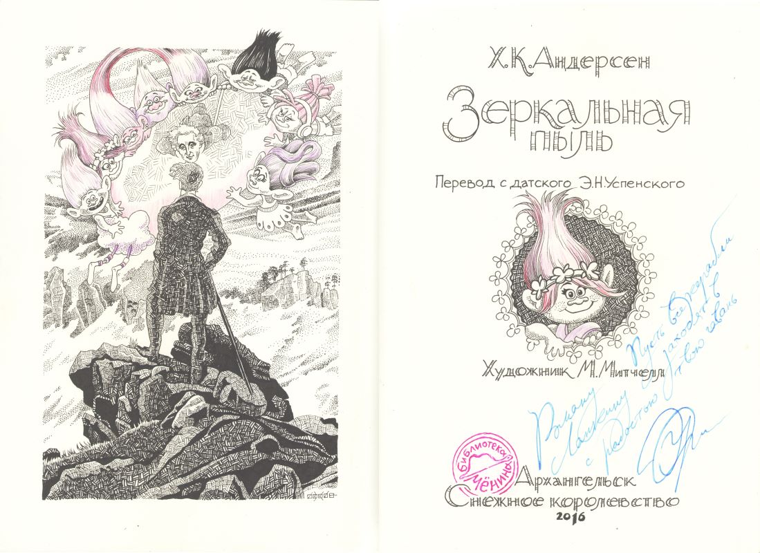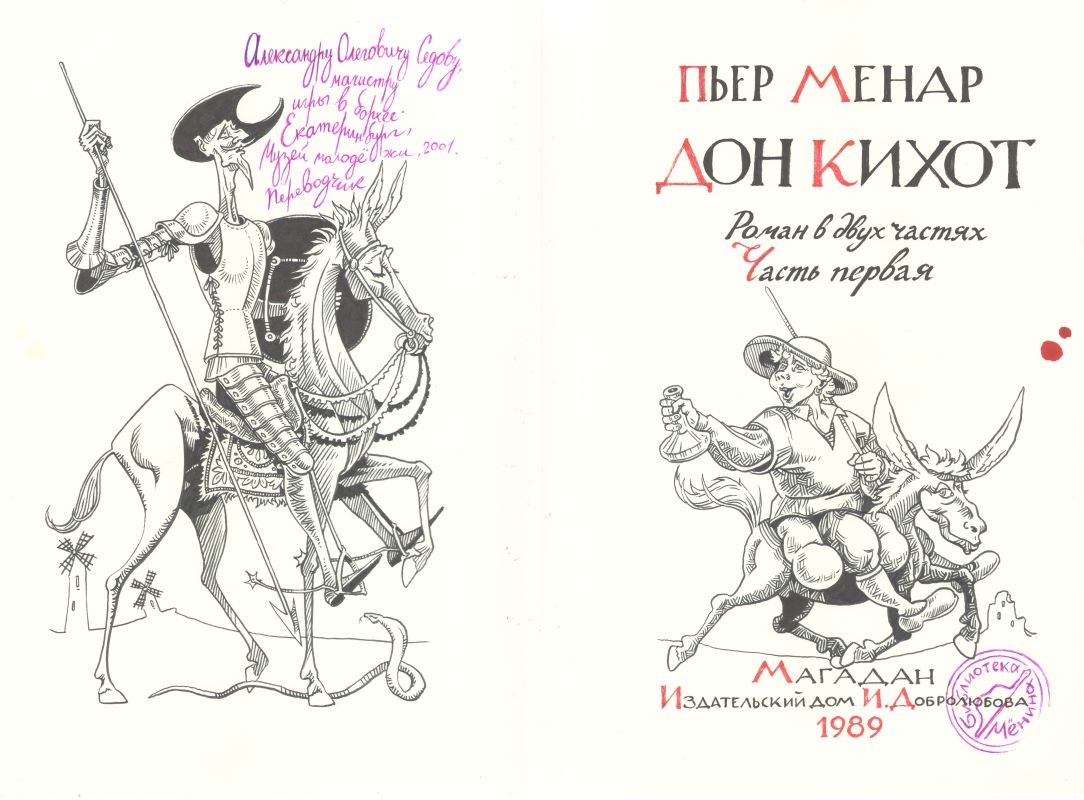 Сергей Ивкин: «В конце 90-х годов мне в руки попалась книга «Чужак» из серии «Лабиринты Ехо», автор которой рассказывал, как проникал в мир своей мечты через сны. Ходил по улицам, выложенным цветной брусчаткой, разговаривал с разумными ветрами. И, конечно же, в том мире была своя библиотека, созданная древним королём по имени Мёнин. Отличительной регалией короля считалась мятая шляпа вместо короны. В его сновидческой библиотеке на полках стояли книги, только задуманные писателями, но не воплощённые на бумаге. А поскольку в библиотеку Мёнина способен попасть любой сновидец, то, засыпая, я всю жизнь представлял, что однажды во сне пройдусь по её залам. Библиотека мне так и не приснилась, но в диалогах с художником и поэтом Аникой Петкевич я стал придумывать книги, которые мог бы там увидеть. И я стал рисовать титулы этих книг со штампом библиотеки (шляпа из сказки «Маленький принц») и с инскриптами (кто и кому эти книги мог бы подписать). И Аника тоже стала рисовать наши совместные фантазии. Каждая книга – это путешествие, герои, пейзажи и детали. Их и вылавливает Аника из сумбура наших диалогов, сохраняет образы в озорной графике, которую можно назвать «снами книг». Могут же и книгам сниться сны? Книги ведь они тоже живые».