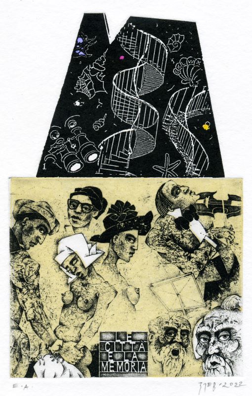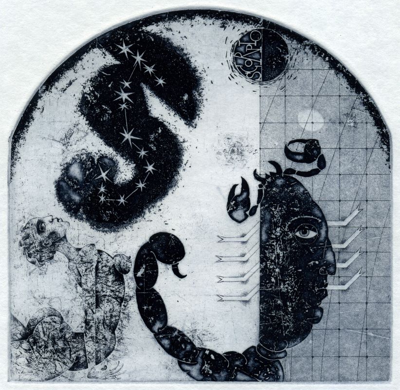 Владимир Зуев представляет работы, в той или иной степени связанные с «галактикой Гутенберга»: цикл «Зодиак» (2019), серия «Семь смертных грехов» (2021), иллюстрации к книге итальянского писателя И. Кальвино «Невидимые города» (2022), эстампы «Балет. За кулисами» (2023). Эстампы, выполненные в технике гравюры на металле (офорт, мягкий лак, резцовая гравюра, акватинта) в сочетании с высокой печатью отражают уникальный авторский язык художника, позволяющий обращаться к традиционным темам мировой культуры, но делающий их звучание резонансным современности.